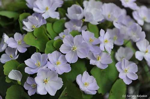 - Дзефферсония пестрая (Jeffersonia diphylla). Этот сорт отличается крупными листьями с белыми и зелеными полосками. Цветы пестрой Дзефферсонии имеют нежно-голубую окраску и собраны в маленькие кистевидные соцветия.