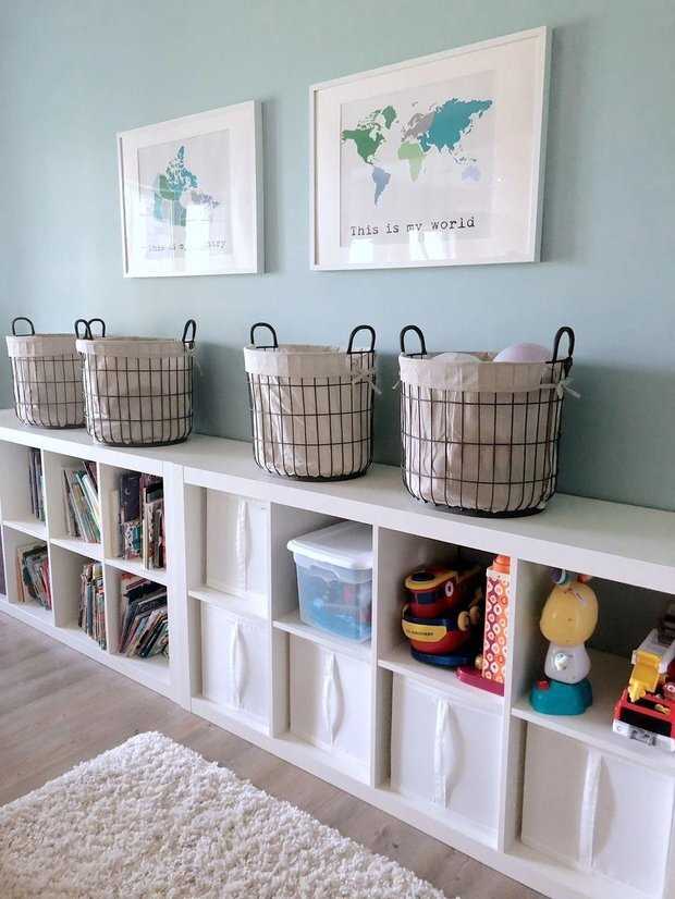 4. Корзины и ящики. Добавление корзин и ящиков, как дополнительных элементов для хранения игрушек, также может быть очень полезным. Корзины и ящики можно разместить на полу, полках или стеллажах, в них можно сложить игрушки и легко найти нужную вещь. Более того, с помощью корзин и ящиков вы можете учить ребенка порядку и организованности, различать и сложность и простоту хранения по сравнению с другими методами.